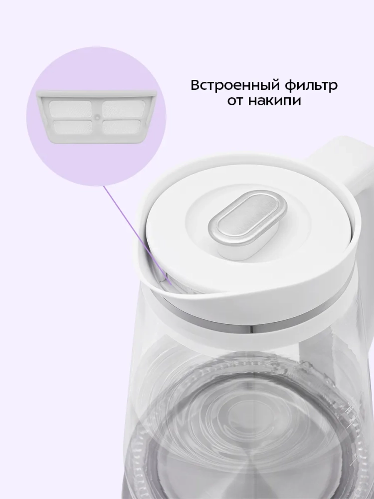 Съемный фильтр внутри носика чайника предотвращает попадание накипи в чашку.