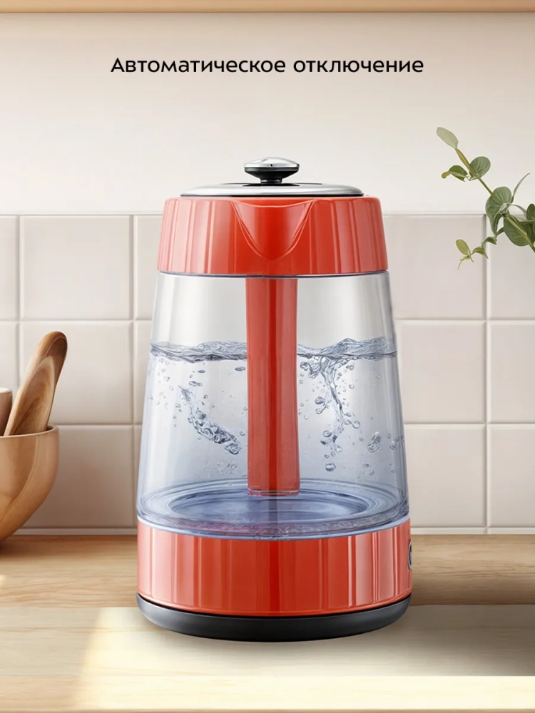 Чайник автоматически отключается при закипании, имеет защиту от перегрева и от включения без воды.