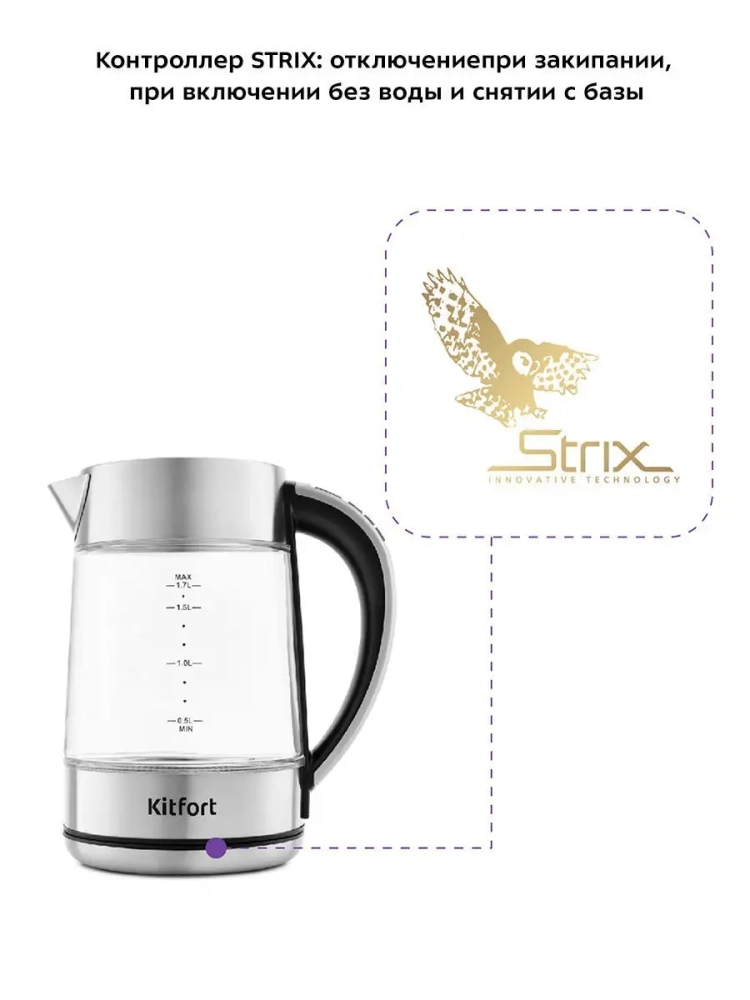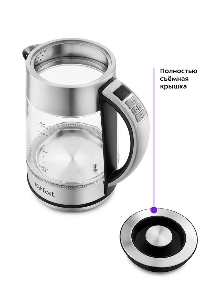 Электрический чайник Kitfort КТ-690 предназначен для нагрева и кипячения воды. Чайник оснащен терморегулятором и может не только вскипятить воду, но и нагреть ее до температуры от 40 до 100 °С, что очень удобно при заваривании различных сортов чая, приготовлении кофе и подогрева детского питания. Чайник также оснащен функцией поддержания температуры. Температура воды контролируется термодатчиком, встроенным в дно чайника.