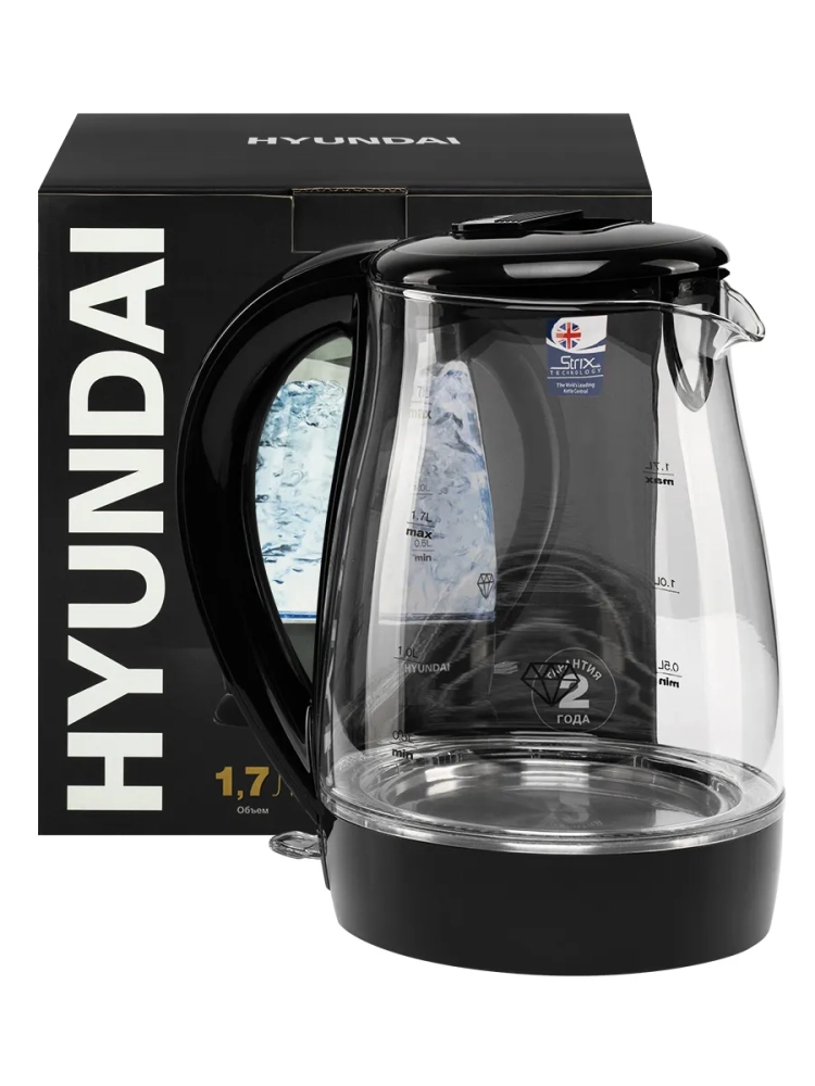 Электрочайник Hyundai HYK-G2011 дополнен нейлоновым фильтром, надежно удерживающим частицы накипи и посторонние примеси. Он в считанные секунды вынимается из прибора для последующего очищения от накопившихся загрязнений. Нанесенная на корпус мерная шкала незаменима для наполнения основного 1.7-литрового резервуара необходимым в текущий момент объемом жидкости.