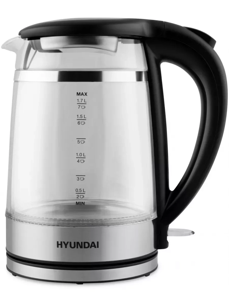 1843395 Чайник электрический Hyundai HYK-G3036, 2200Вт, черный и прозрачный