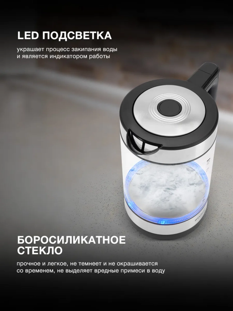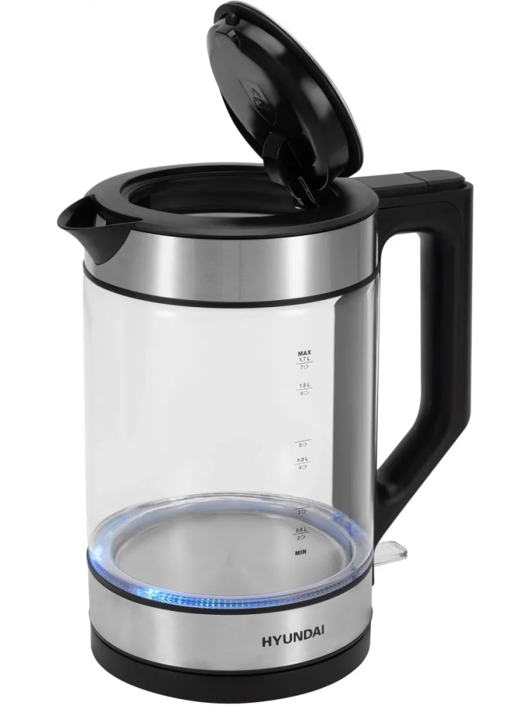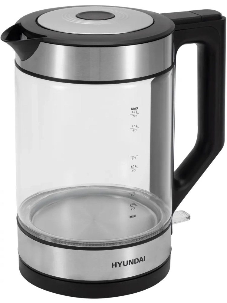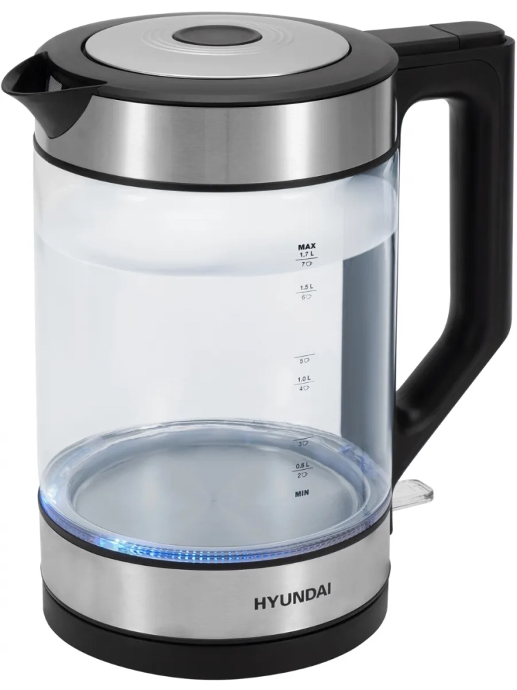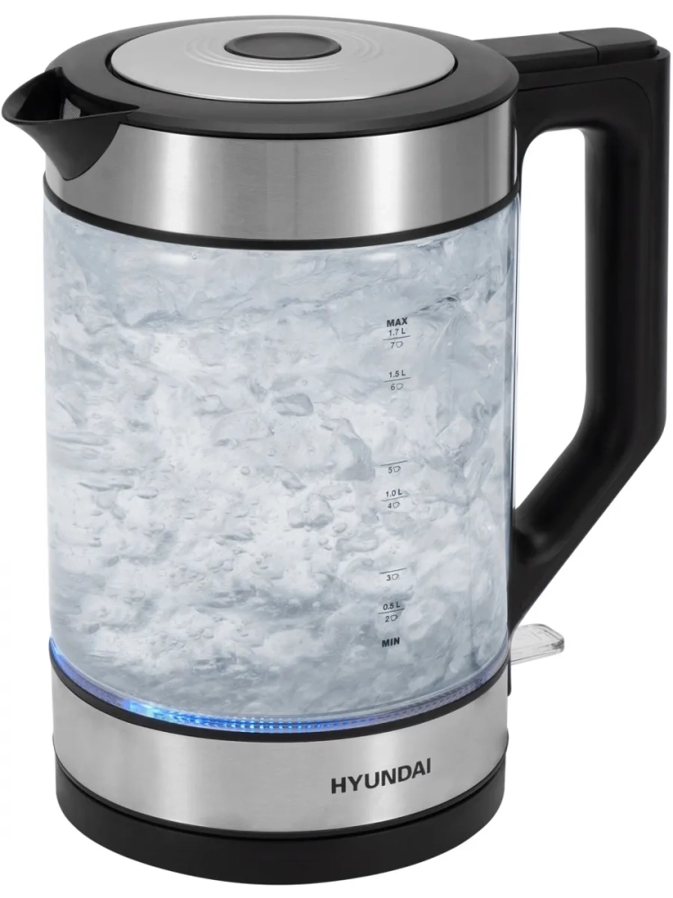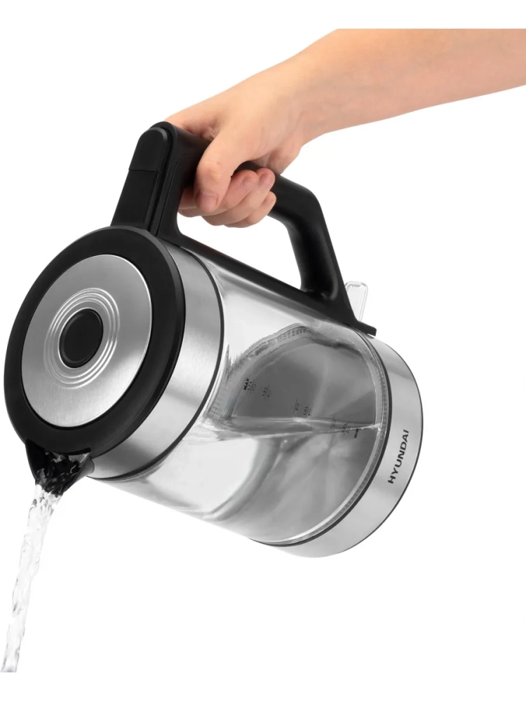 1988577 Чайник электрический Hyundai HYK-G3509, 2200Вт, черный и прозрачный
