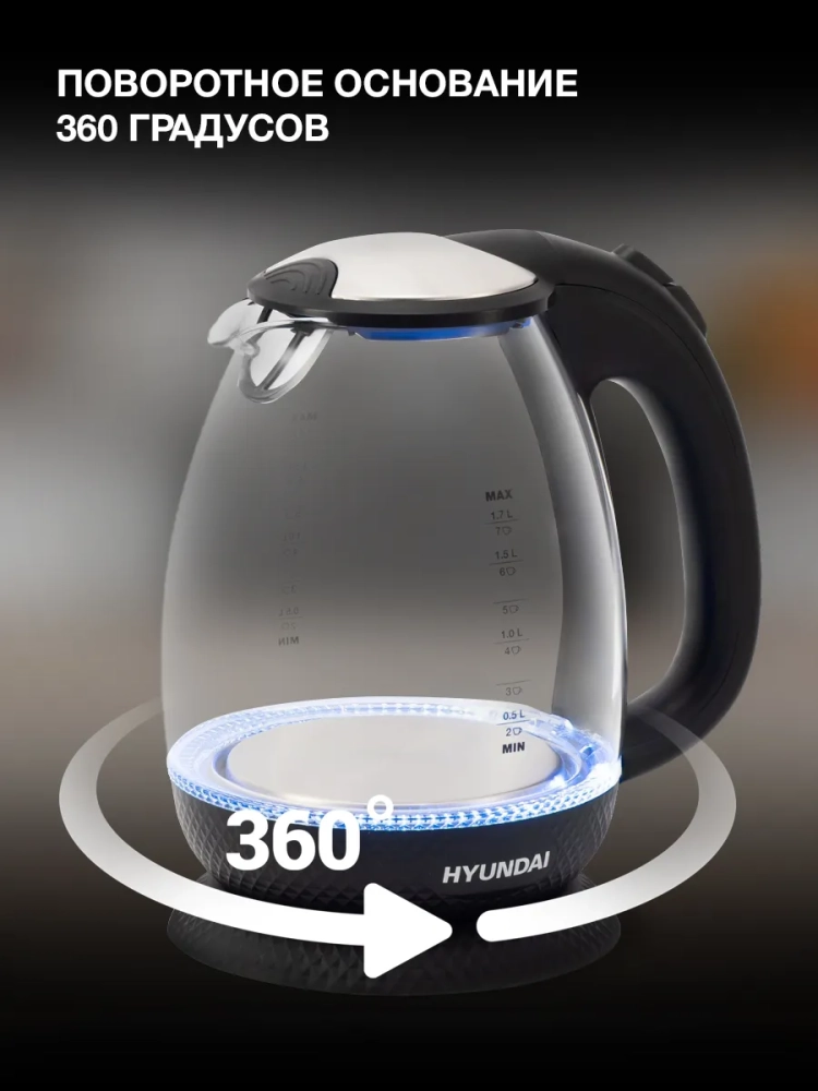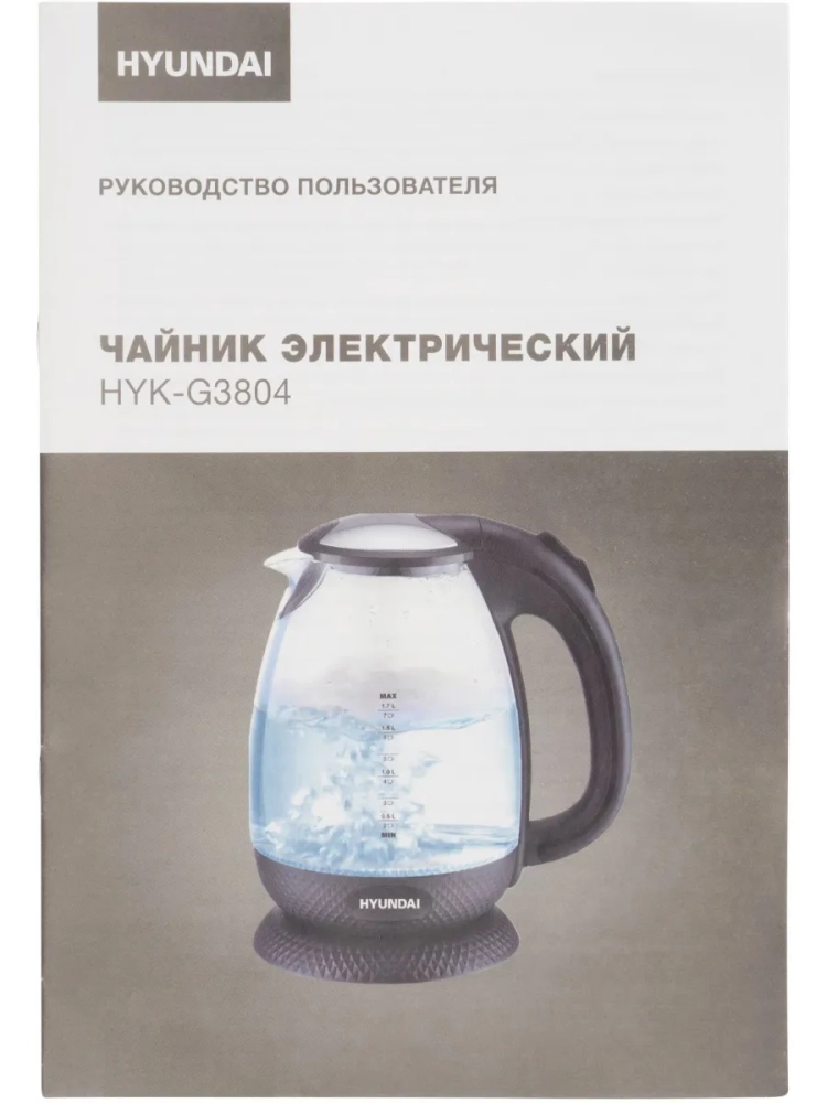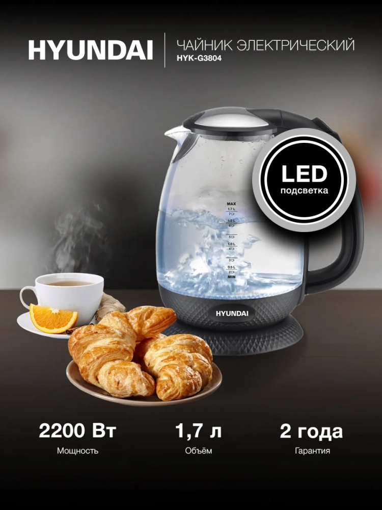 Чайник Hyundai HYK-G3804 1.7л. 2200Вт черный (стекло)