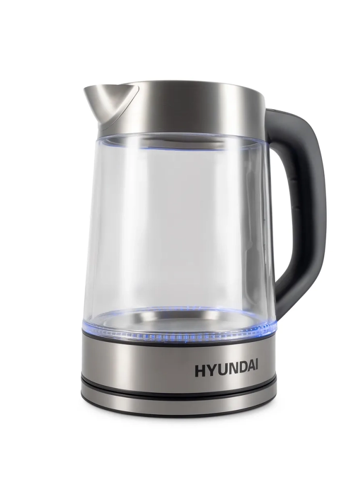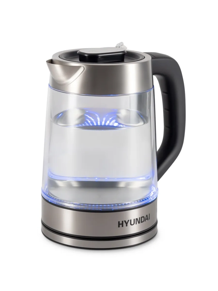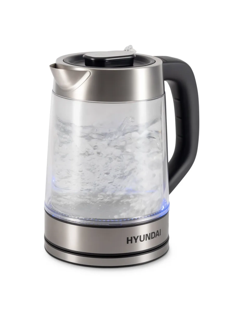 Чайник электрический Hyundai HYK-G4015 черный/серебристый, объём 1.7л, мощность 2200Вт, материал корпуса: стекло. Двойной теплоизолированный корпус. Внешний корпус из прозрачного пластика, защищает от случайного ожога при прикосновении. Внутренний корпус из боросиликатного стекла, не впитывает и не выделяет примесей, не темнеет и не окрашивается со временем. Стильный и безопасный чайник с двойными стенками. Качественная сборка, эргономичная форма, хромированные элементы, делают из чайники стильный и полезный аксессуар на кухне. Возможность залива воды через крышку. Полностью съемная крышка для простоты залива и очистки чайника. Красивая LED подсветка украшает процесс закипания воды, служит индикатором работы.