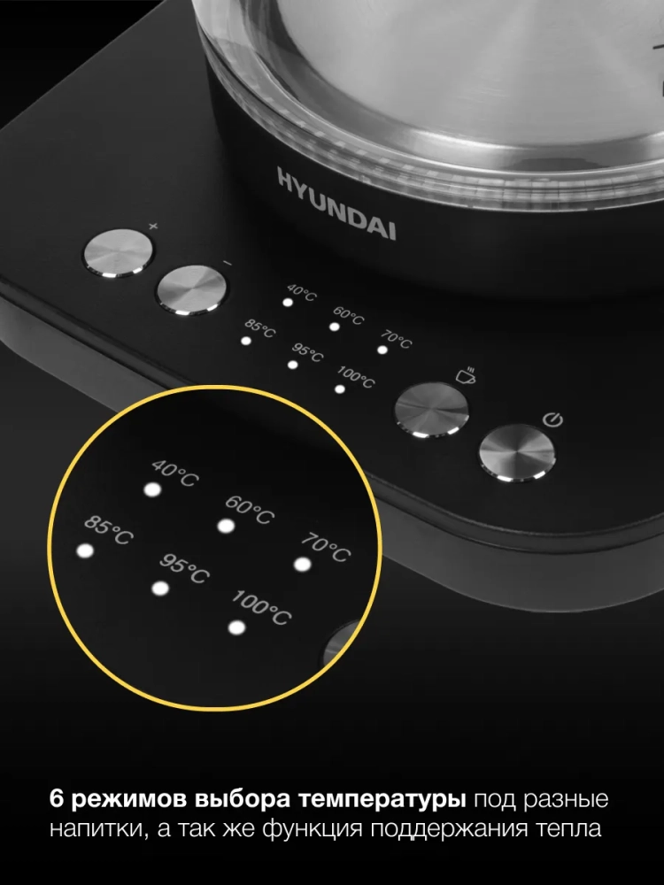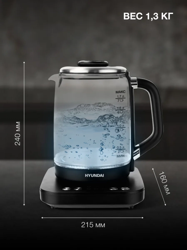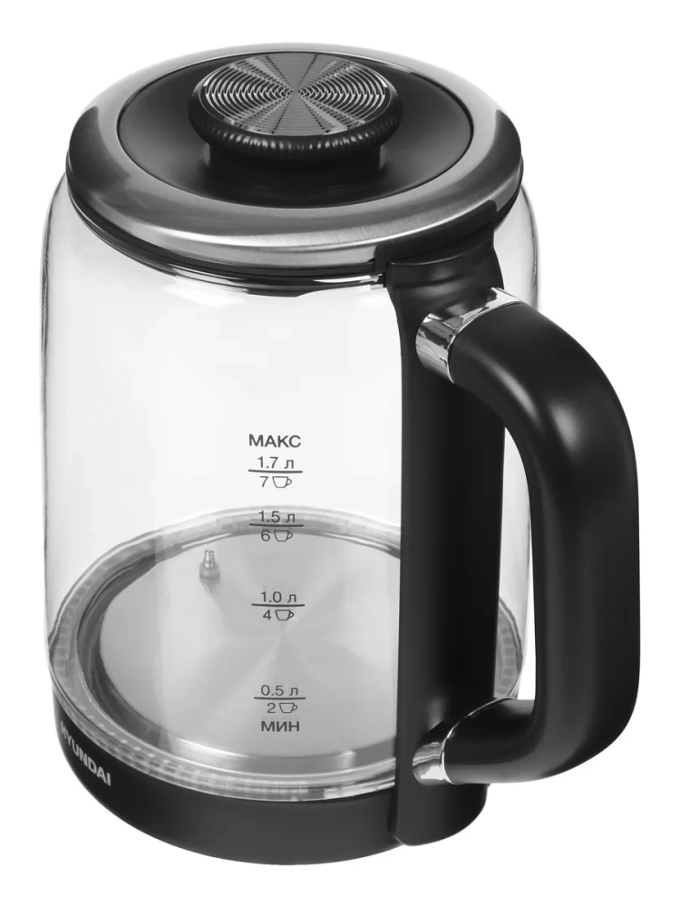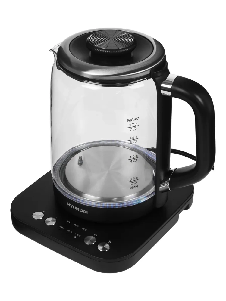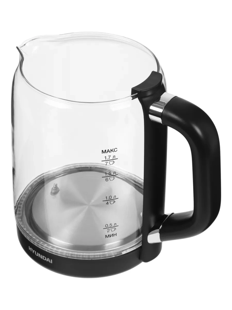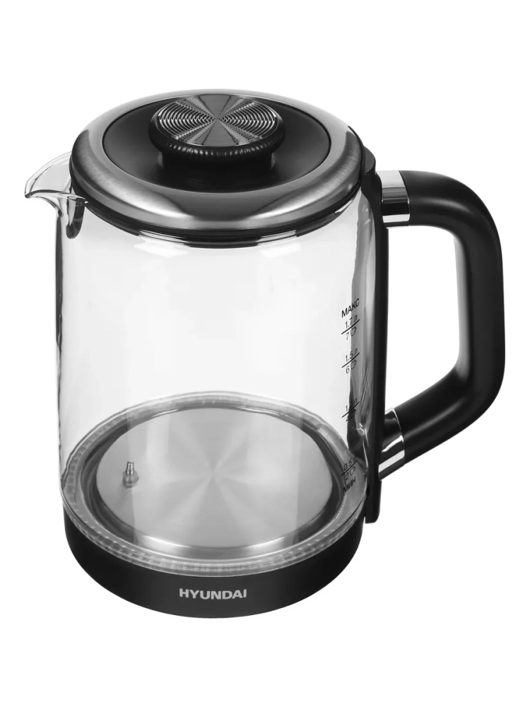 Чайник электрический Hyundai HYK-G5506 черный/серебристый, объём 1.7л, мощность 2200Вт, материал корпуса: стекло.