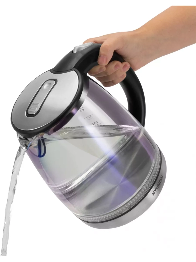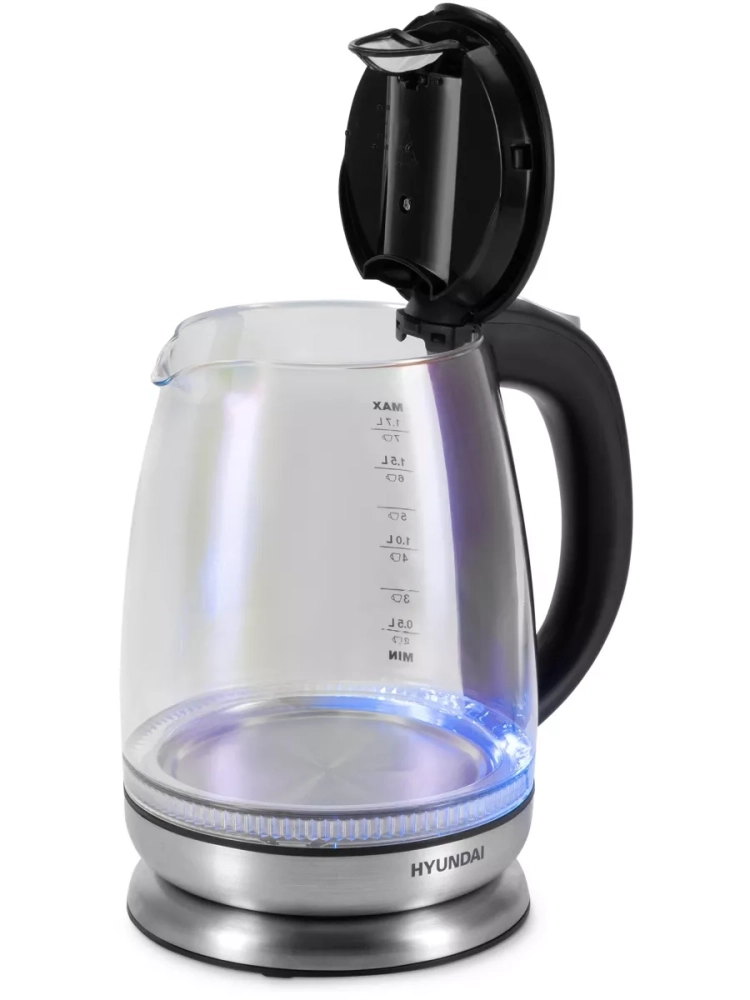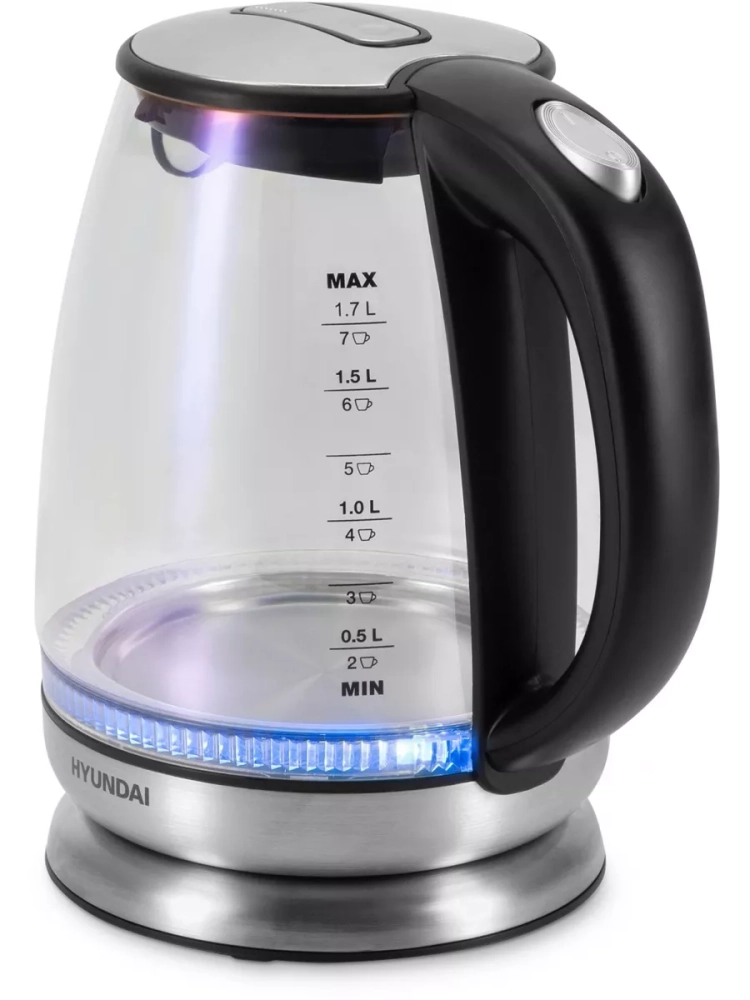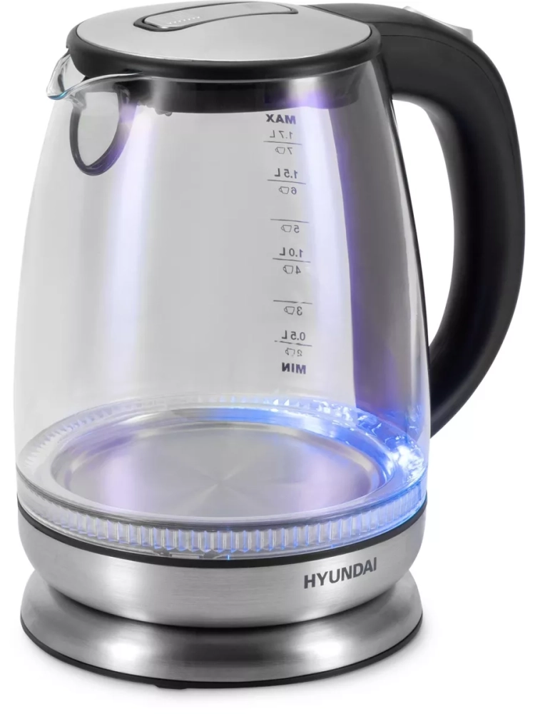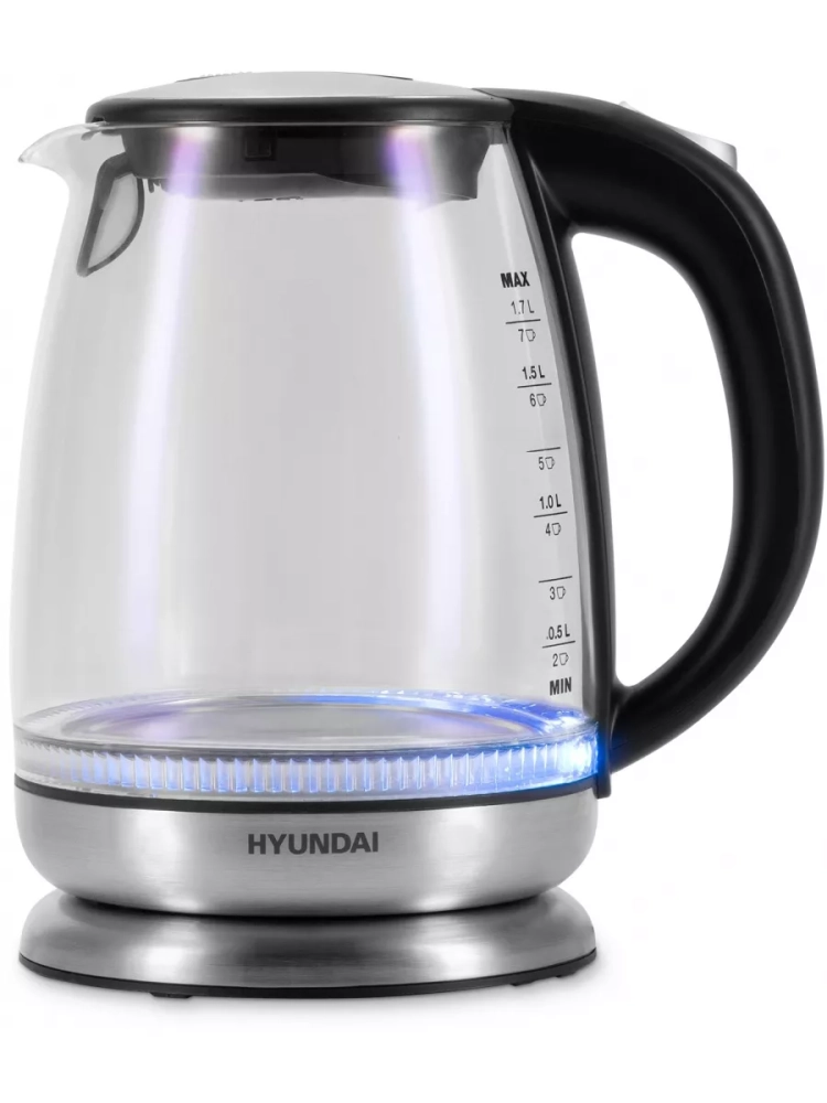 1980866 Чайник электрический Hyundai HYK-G8800, 2200Вт, черный и серебристый