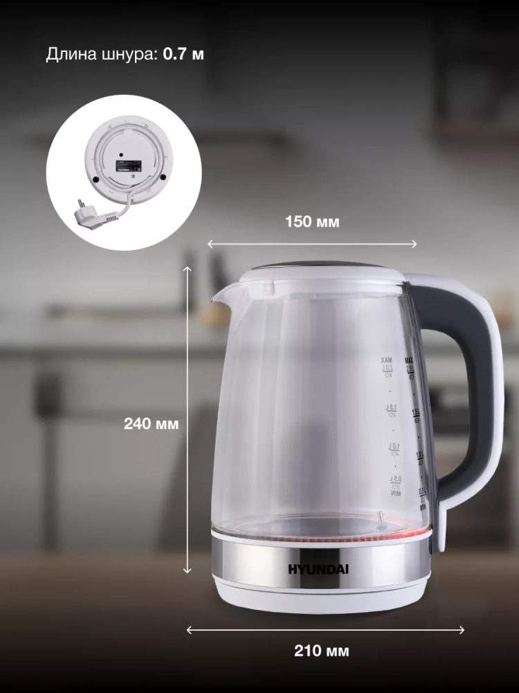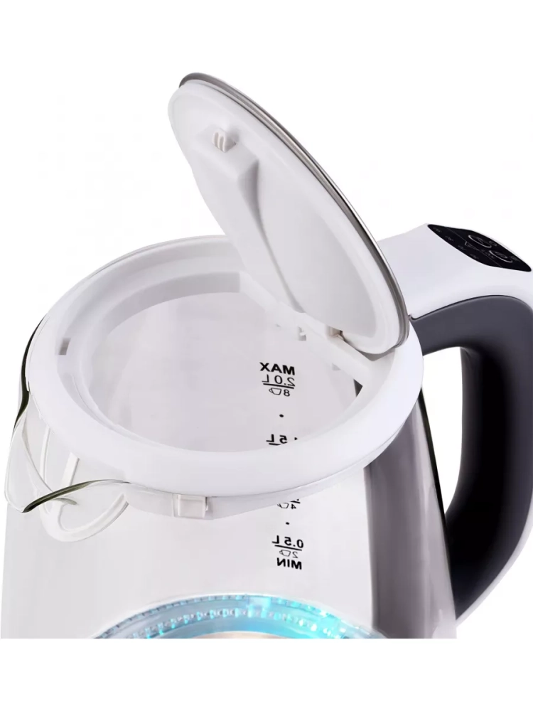 Интуитивно понятные индикаторы уровня воды, включения и подсветки дополняют функциональность. При закипании раздается звуковой сигнал. Безопасность гарантирует защита от включения без воды и автоматическое отключение.