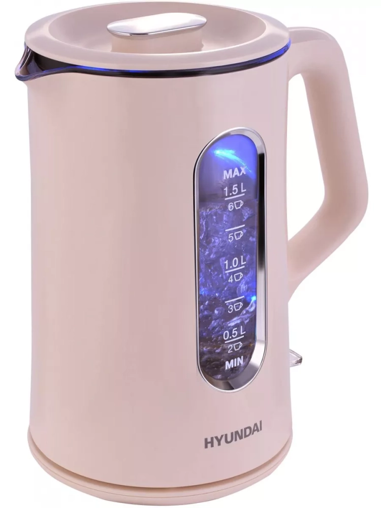 1980858 Чайник электрический Hyundai HYK-G8888, 1700Вт, кремовый и прозрачный