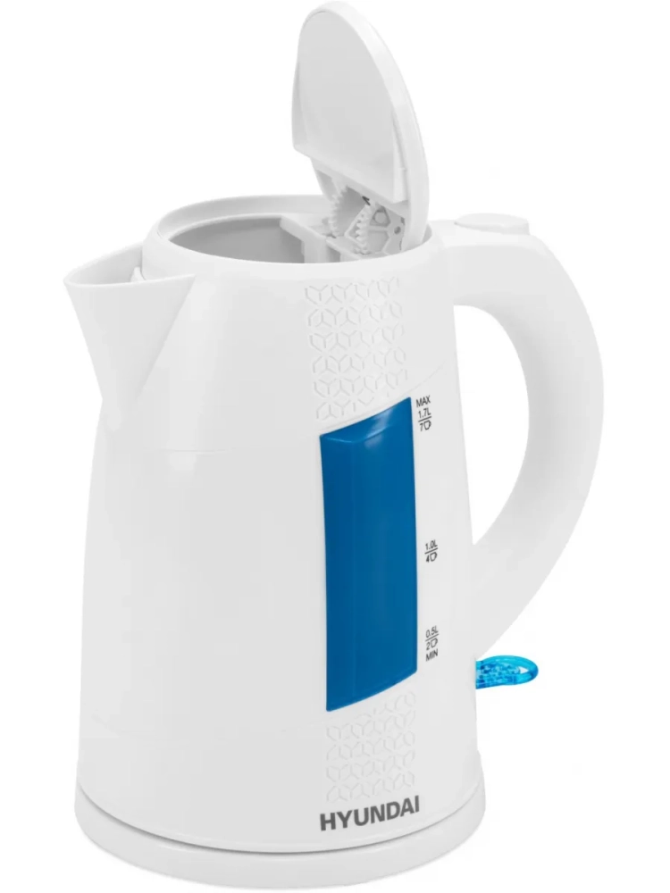 Электрический чайник Hyundai HYK-P2407 с белым корпусом из экологичного пластика вместимостью 1,7 л и нагревательным элементом мощностью 2200 Вт позволит вскипятить воду для приготовления 7 порций чая. Наличие смотрового окна с тремя мерными метками поможет с высокой точностью рассчитать необходимый объем, а функция автоотключения – спокойно отвлечься на другие дела.