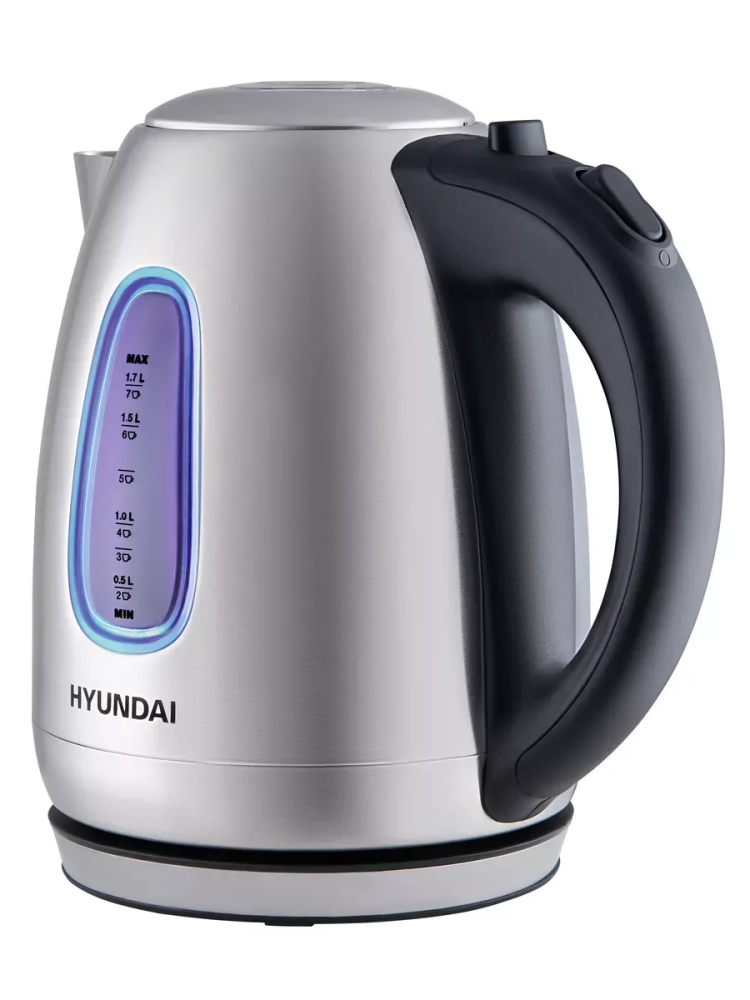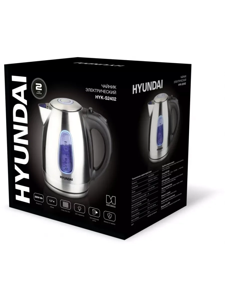 Компактный и прочный электрический чайник из нержавеющей стали Hyundai HYK-S2402 с подсветкой и нагревательным элементом мощностью 2200 Вт быстро вскипятит воду для любых горячих напитков. Наличие смотрового окна и мерной шкалы позволит контролировать уровень наполнения, а встроенный фильтр препятствует попаданию накипи чашку.