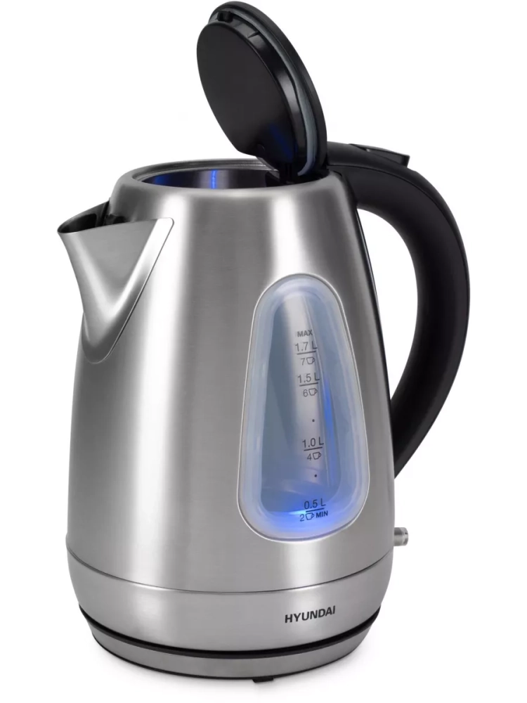 Электрический чайник Hyundai HYK-S7407 объемом 1,7 л и мощностью 2200 Вт позволит быстро кипятить или подогреть воду сразу на 7 порций чая или любого другого напитка. Серебристо-матовый стальной корпус обеспечивает ему презентабельный внешний вид, прочность и долговечность.
