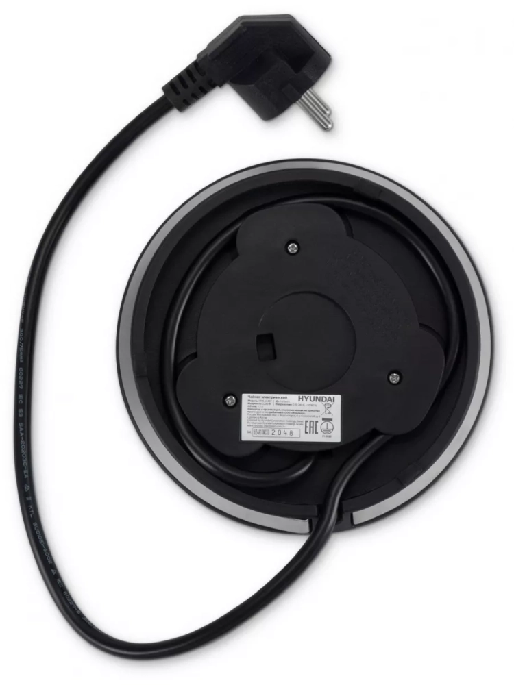 Чайник электрический Hyundai HYK-S7407 серебристый матовый/черный, объём 1.7л, мощность 2200Вт, материал корпуса: металл.