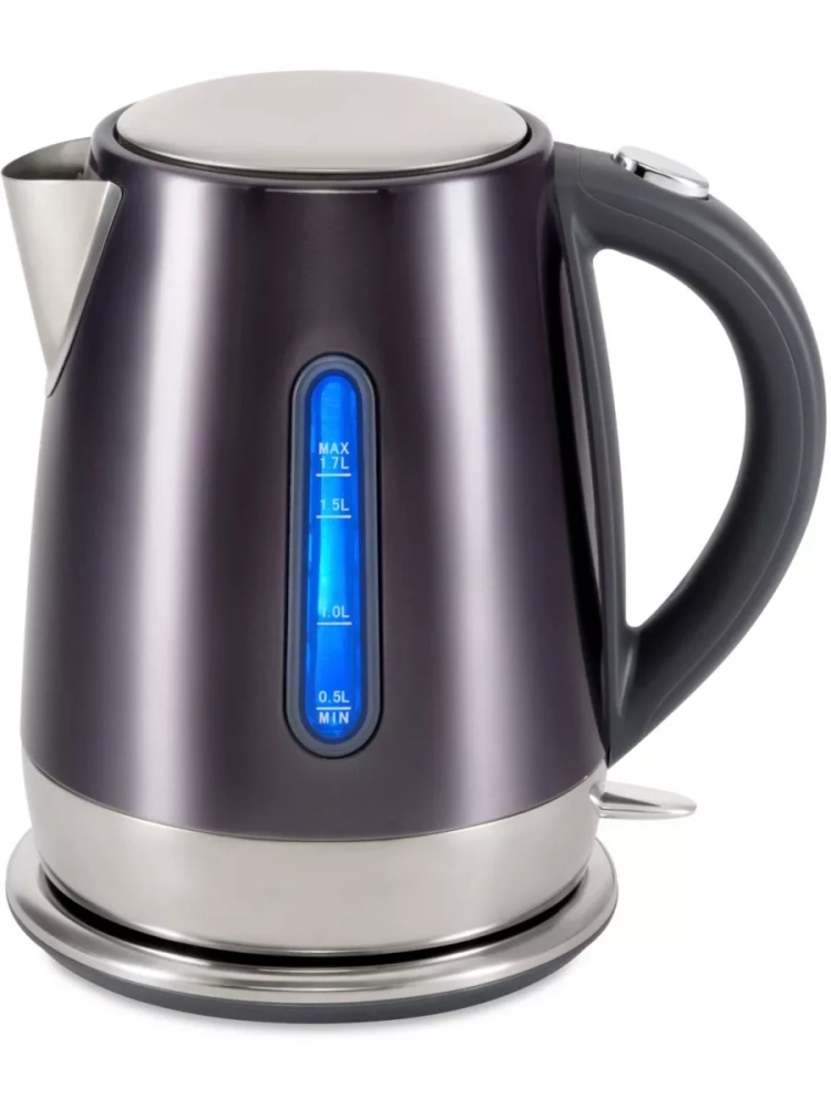 Голубая подсветка воды создает уютную атмосферу на вашей кухне и служит показателем работы чайника. Защита от включения без воды и автоматическое отключение обеспечивают безопасность эксплуатации. Подставка с вращением на 360 градусов и удобная кнопка открытия крышки обеспечивают дополнительный комфорт в использовании.