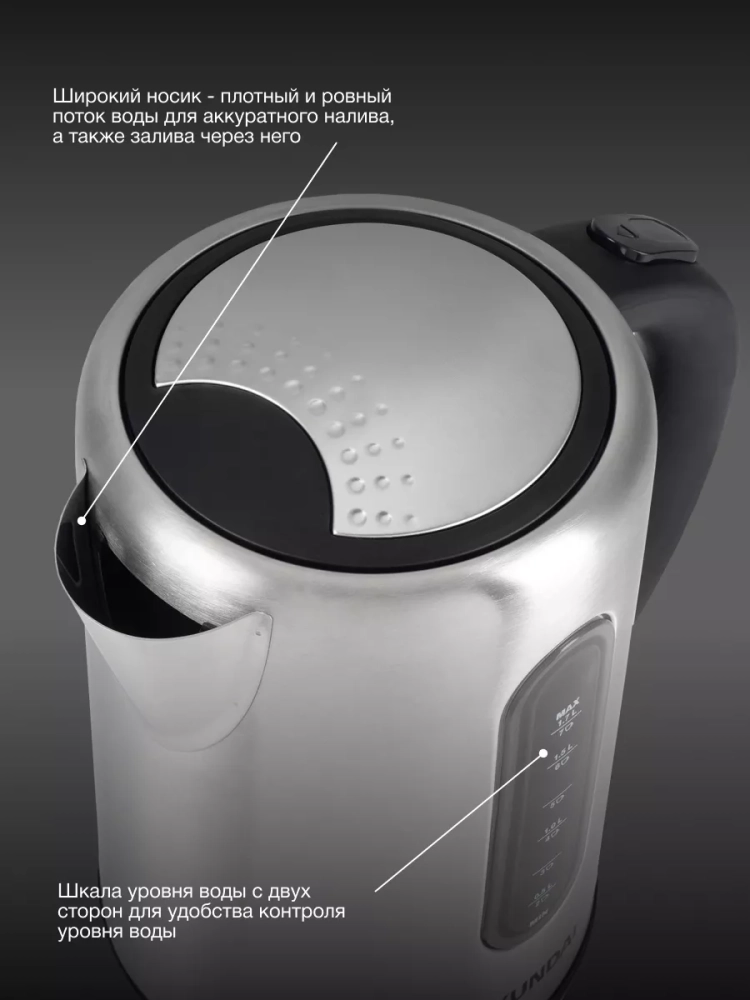 Чайник имеет строгий консервативный дизайн, который будет отлично смотреться на любой кухне. Он выполнен из качественных материалов, обеспечивающих стабильность и долговечность работы устройства.