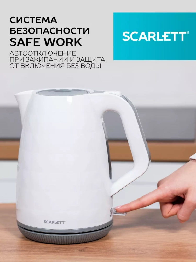 Safe Work автоотключение при закипании, защита от включения без воды обеспечат безопасное использование прибора.