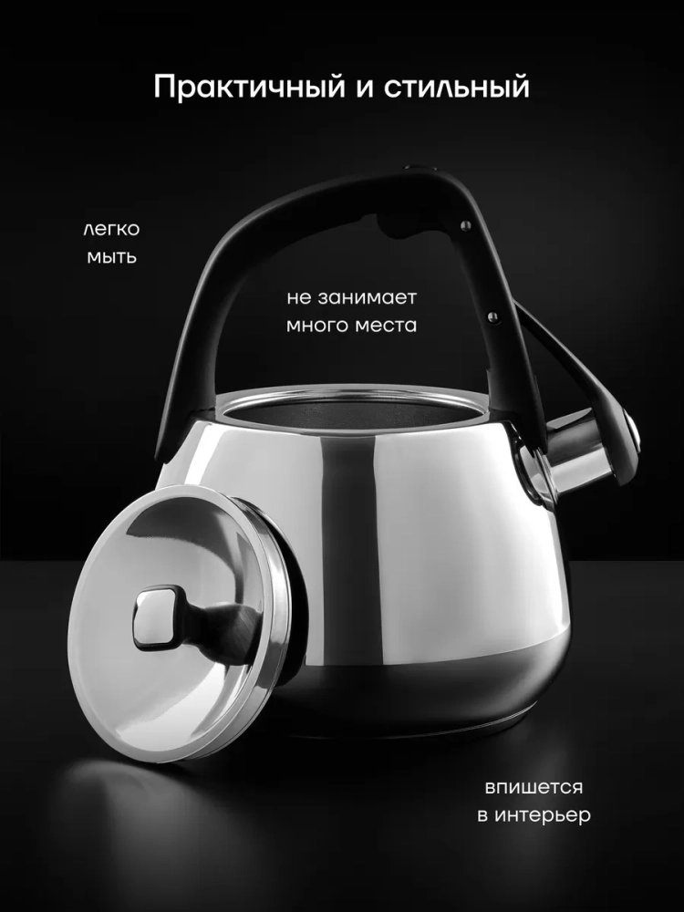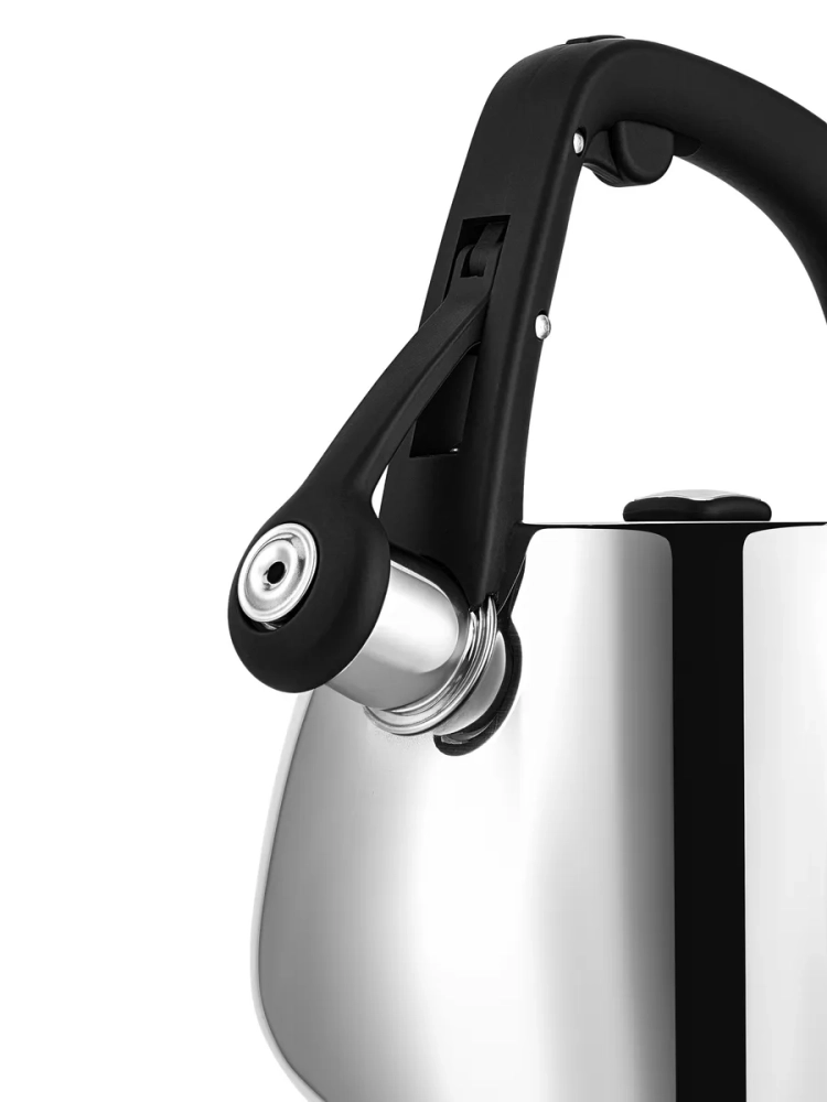 Технология UNIFORM HEAT, интегрированная в капсулированное двойное дно с термоаккумулирующим слоем, обеспечивает равномерный нагрев, быстрое закипание и долгое сохранение температуры. Бакелитовая ручка с эргономичным дизайном и мягким покрытием Soft-touch обеспечивает комфортный и безопасный захват, не нагреваясь и не скользя в руке, в отличие от ручек из пластика. Съемная крышка упрощает процесс наполнения чайника водой и облегчает его очистку. Клапан на носике легко открывается с помощью кнопки на ручке. Большой объем посуды (2,5 литра) позволяет приготовить горячие напитки для всей семьи и гостей.