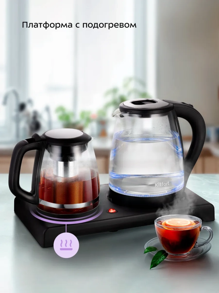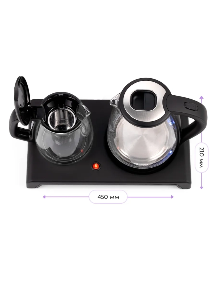 Стильный и функциональный чайный набор Kitfort КТ-6179 состоит из чайника емкостью 2 л, кувшина с фильтром для заварки емкостью 1,2 л и базы. Набор поможет вам не только вскипятить воду, но и заварить чай или кофе.