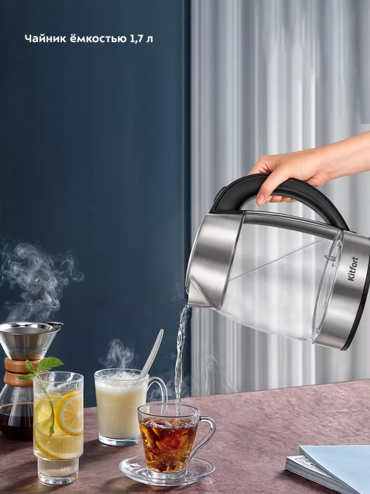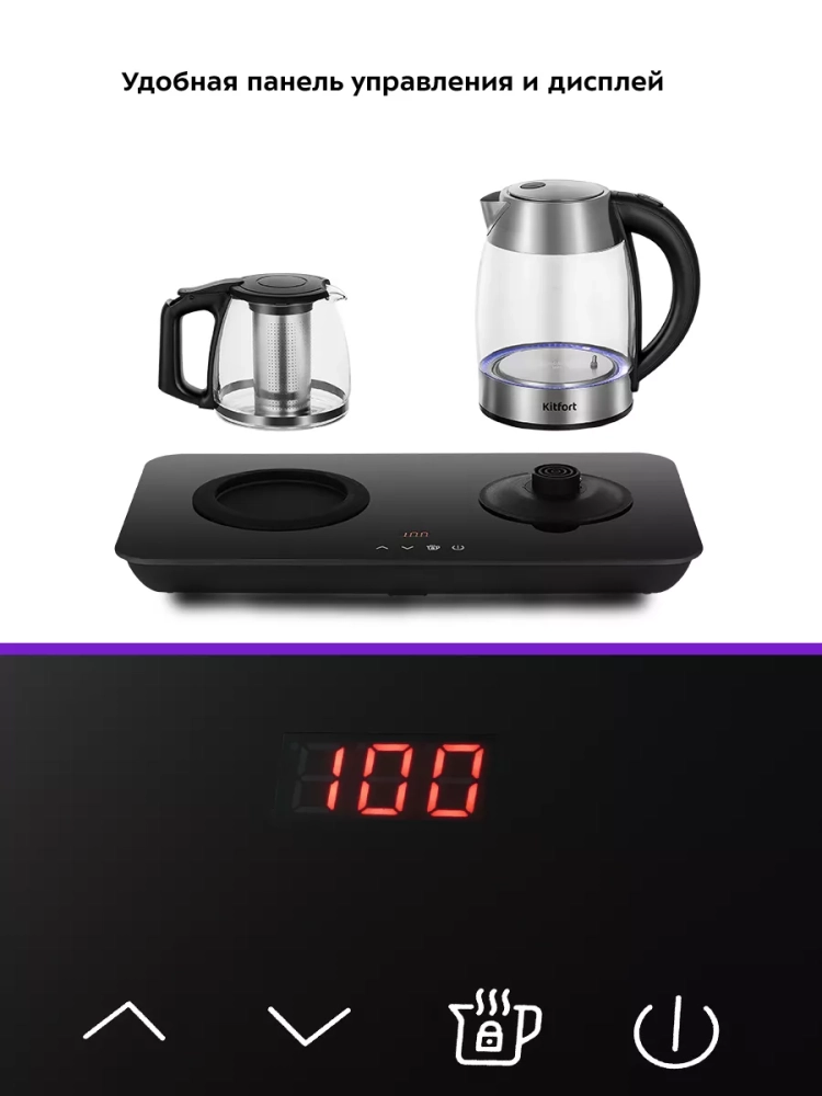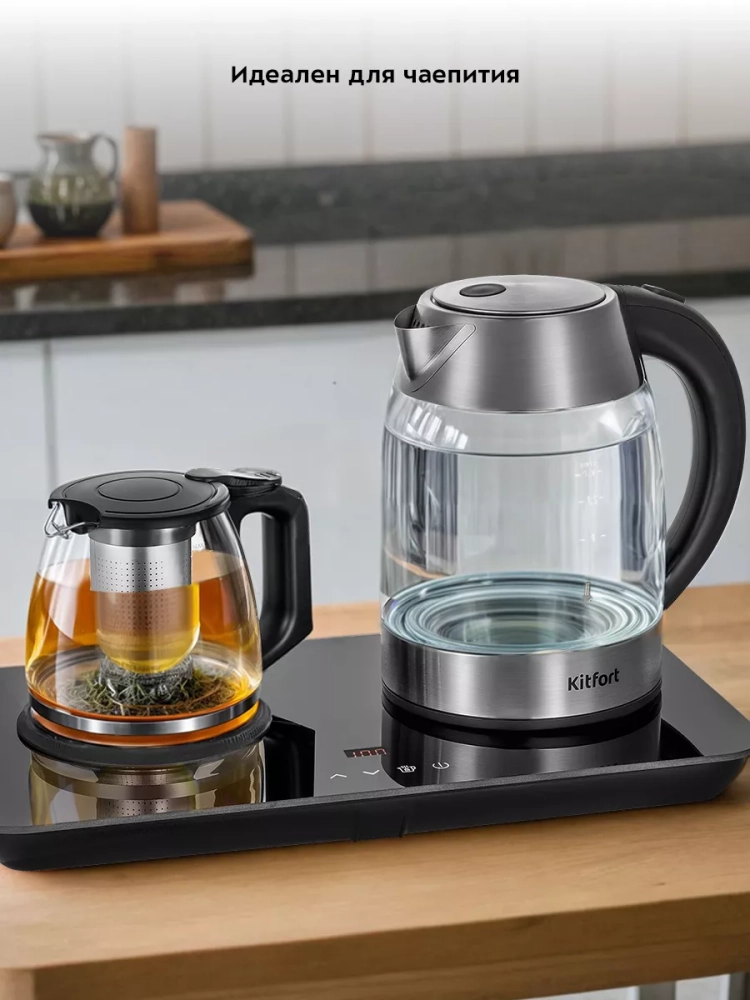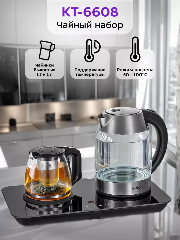 Чайный набор Kitfort КТ-6608 состоит из чайника емкостью 1,7 л, заварочного чайника с фильтром для заварки емкостью 1 л и базы. Набор поможет вам не только вскипятить воду, но и нагреть ее до температуры 50, 60, 70, 80, 90 °C. Вы можете заварить чай или кофе, а также сохранять готовый напиток теплым.