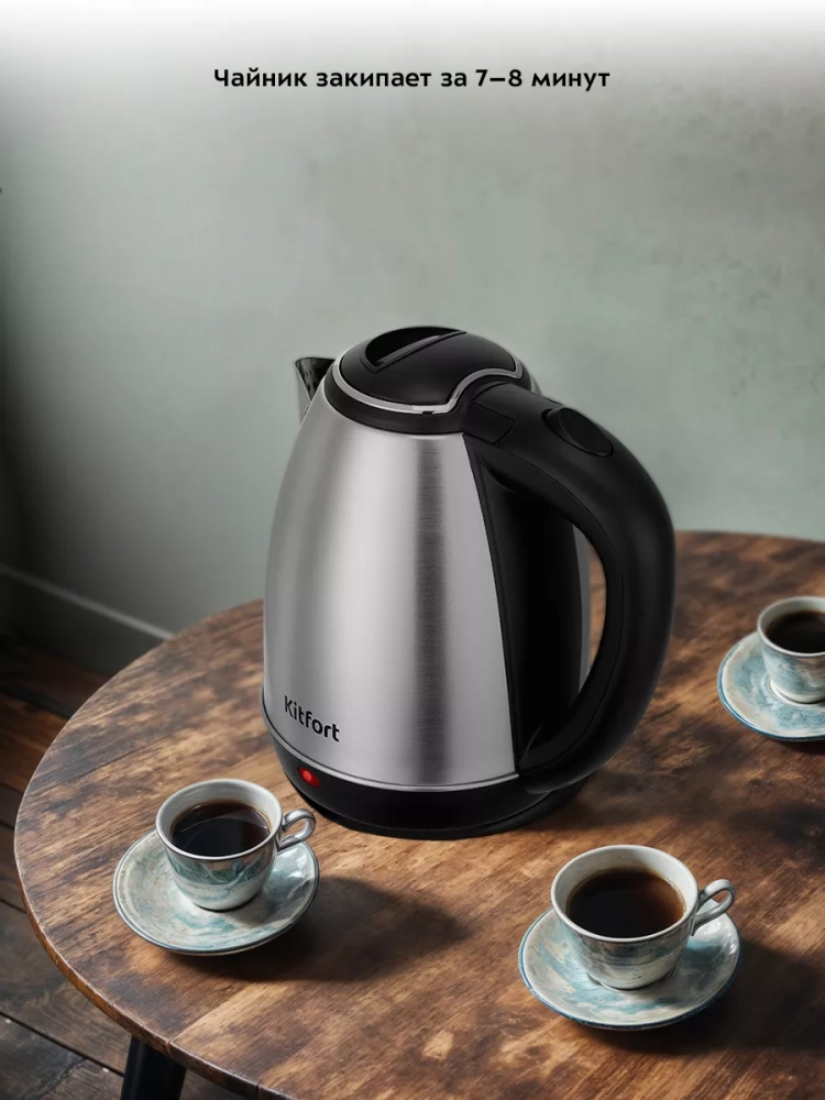 Полный чайник закипает за 7–8 минут.