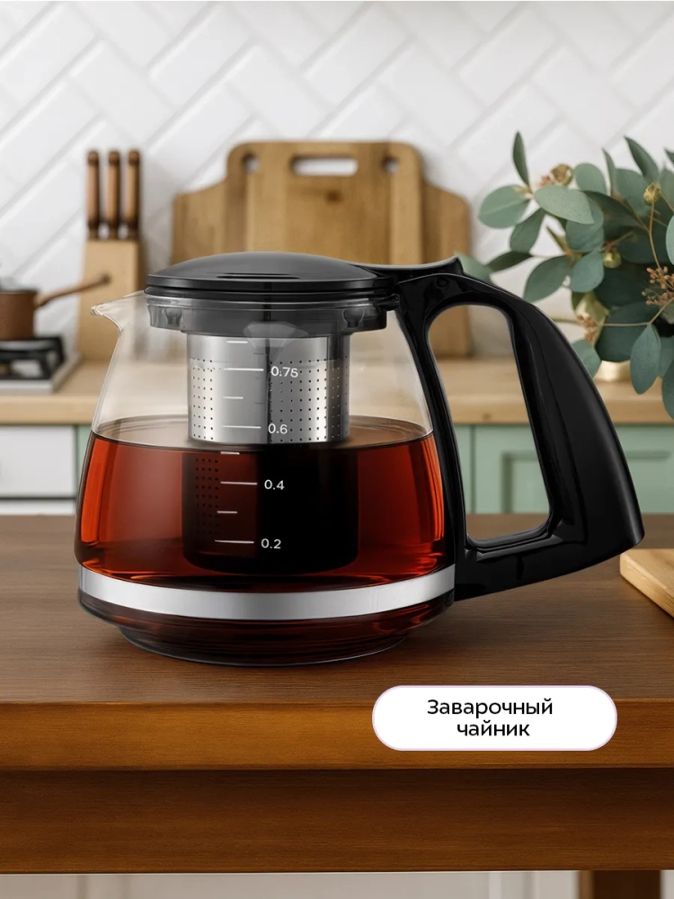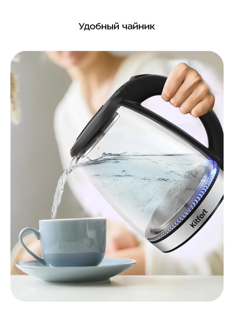 Чайный набор Kitfort КТ-6689 — это превосходное решение для вашего дома, сочетающее стиль и функциональность. В комплект входит стеклянный чайник объемом 1,8 литра и заварочный чайник с фильтром емкостью 0,75 литра. Этот бытовой прибор не только вскипятит воду, но и поможет заварить ваш любимый чай или кофе. Корпус основного чайника выполнен из стекла с пластиковой вставкой, а крышка сочетает в себе нержавеющую сталь и пластик для долговечности. Мерная шкала на боковой стороне корпуса позволяет легко контролировать уровень воды. Пластиковая ручка обеспечивает удобство использования без риска ожогов благодаря своей термостойкости. Внутренняя часть корпуса изготовлена из металла и стекла, что способствует равномерному нагреву воды. Нагревательный элемент температуры скрыт под металлической пластиной из нержавеющей стали, предотвращающей образование накипи и снижая шум при кипячении. Чайник оснащен функцией автоотключения для безопасности использования: он автоматически отключается при перегреве или отсутствии воды. Центральный контакт базы позволяет вращать чайник на 360°, обеспечивая удобство установки в любом положении. Заварник выполнен из термостойкого стекла со съемным фильтром для чая или кофе. База устройства также изготовлена из прочного пластика с кнопкой включения функции поддержания тепла заварочного чайника. Компактное размещение обоих элементов набора делает его идеальным решением для любой кухни. Электропитание осуществляется от сети напряжением ~220–240 В при частоте 50/60 Гц, а мощность составляет 1500 Вт. Длина шнура — 0,8 м; размеры устройства: 430 х 225 x 260 мм.