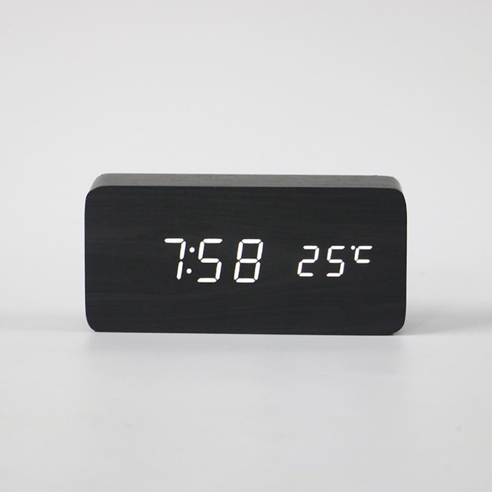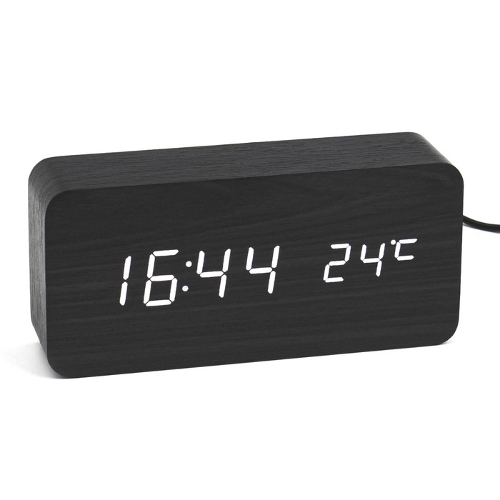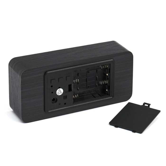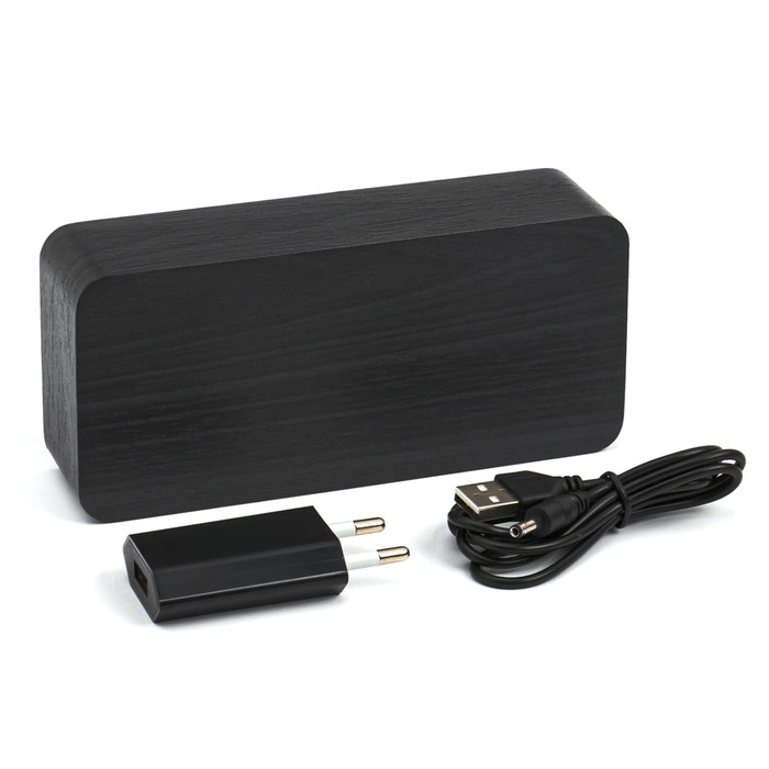 Часы - будильник электронные "Цифра-Т" настольные с термометром, деревянные, ААА, USB