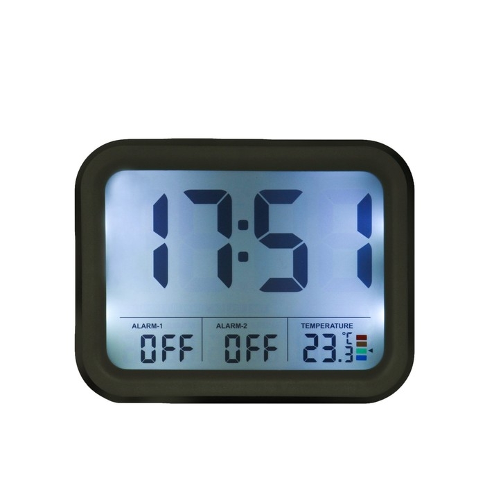Часы - будильник электронные настольные с термометром, 10.3 х 8.3 см, 2ААА