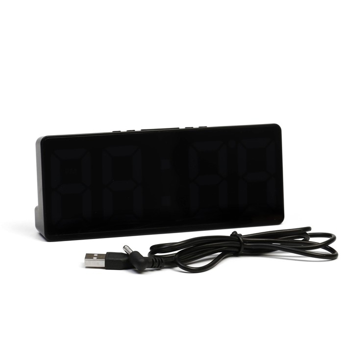 Часы - будильник электронные настольные с термометром, календарем, 15 х 6.3 см, ААА, USB