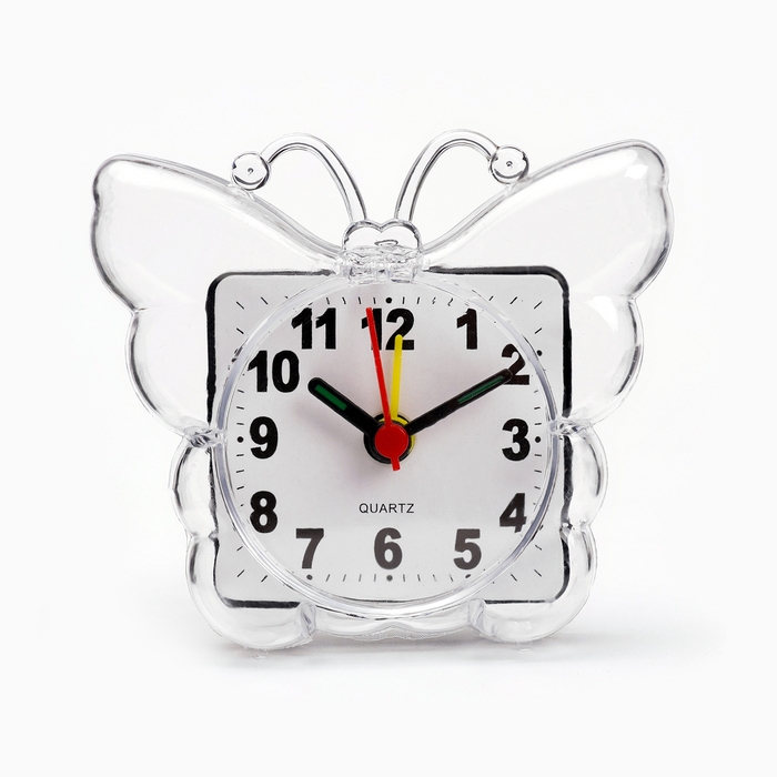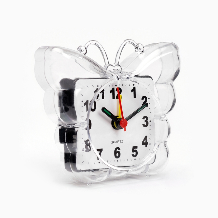 Часы - будильник настольные "Бабочка", дискретный ход, циферблат 5.5 см, 9 х 8 см, АА, белые