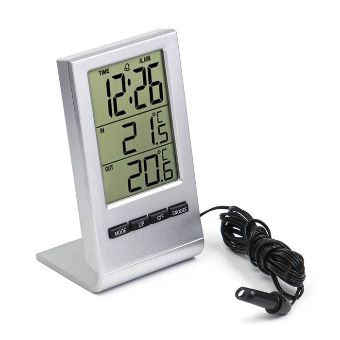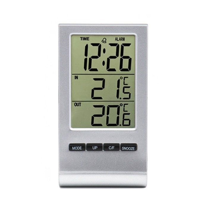 Часы электронные настольные, будильник с метеостанцией, сигнал тревоги, 5.7 х 10.6 см, 2 AG10 736451