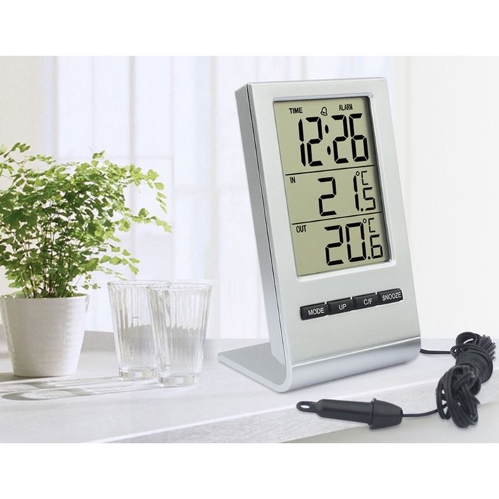 Часы настольные электронные с будильником и метеостанцией представлены в современном дизайне. Интерьерные часы станут прекрасным декором для дома и дачи, их можно поставить как на прикроватную тумбочку в спальне, детской комнате, гостиной так и на стол или на комод в зале, холле или на кухне. Часы настольные обладают громким будильником, ребенку и вам будет комфортно просыпаться, на работу и в школу. Будильник не требует частой замены батареек благодаря экономичному механизму.