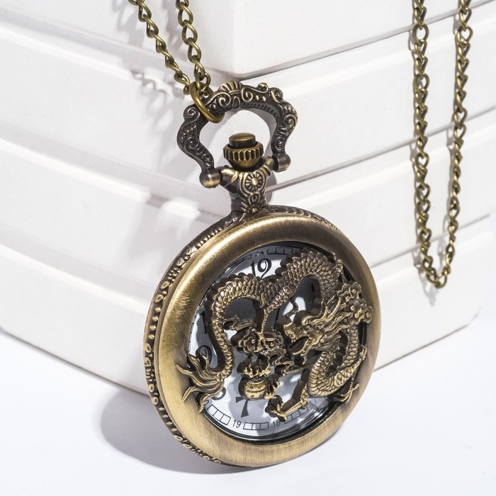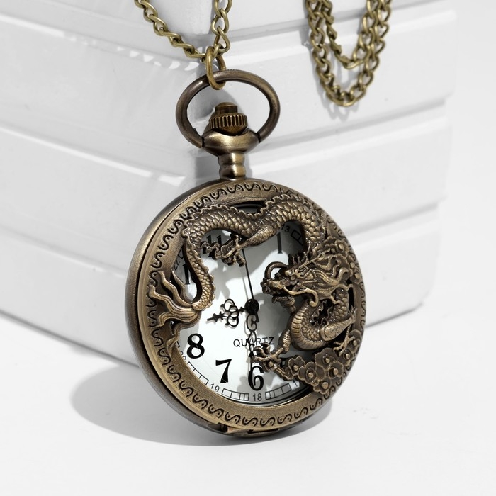 Часы карманные "Дракон", кварцевые, цепочка l-37 см, d-4.5 см