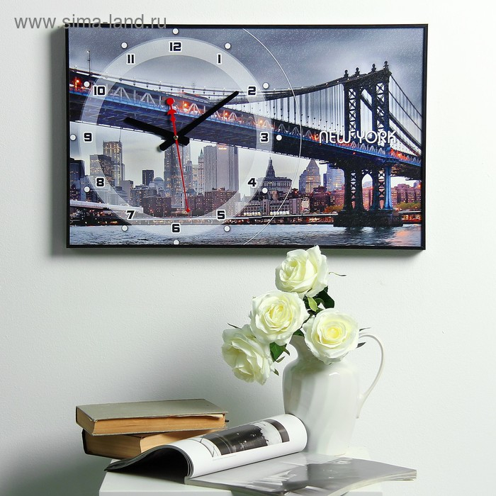 Часы-картина настенные, интерьерные "Бруклинский Мост", плавный ход, 57 х 35 х 4 см