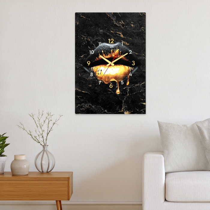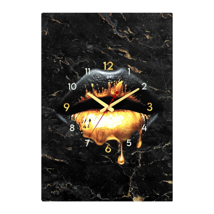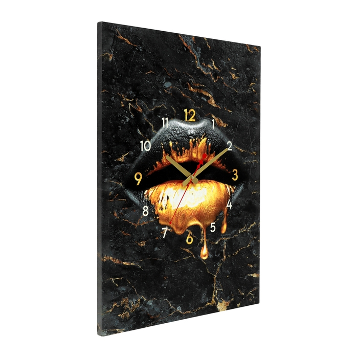 Часы-картина настенные интерьерные "Губы черное золото", бесшумные, 50 х 70 см