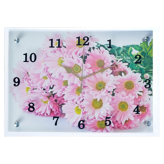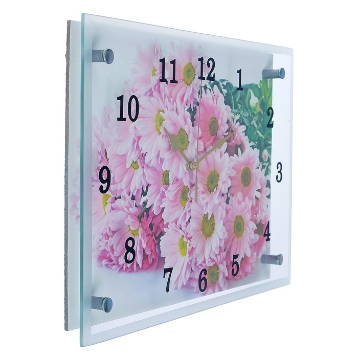 Часы-картина настенные, интерьерные "Хризантемы", бесшумные, 25 х 35 см