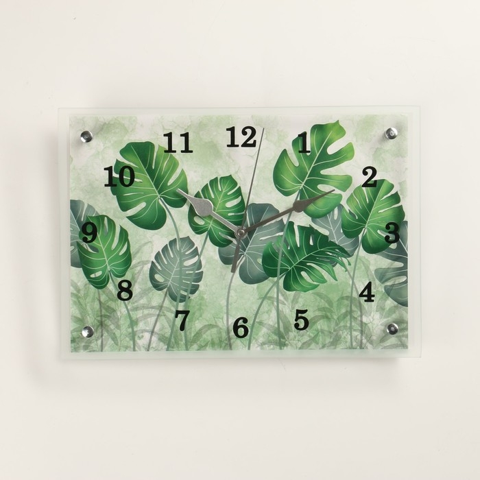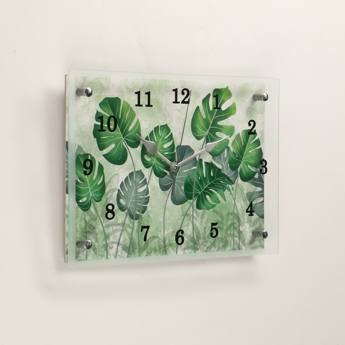 Часы из стекла Сюжет размером 25 х 35 см - это элегантный и стильный аксессуар, они имеют прямоугольную форму, которая добавляет особый шарм в интерьер вашего дома. Механизм бесшумный, батарейка формата АА, в комплект не входит. Тип индикации - арабские цифры, что делает время на часах четко видимым и легко читаемым.