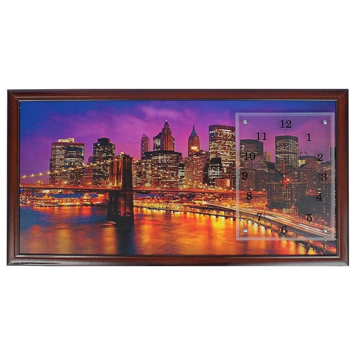 Часы-картина настенные, интерьерные "Ночной Нью-Йорк", 50 х 100 см, на холсте, бесшумные