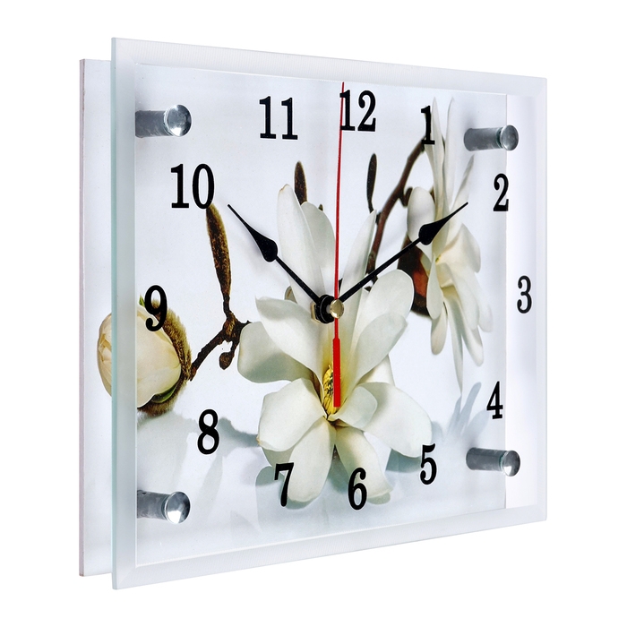 Часы из стекла Сюжет размером 20 х 25 см - это элегантный и стильный аксессуар, они имеют прямоугольную форму, которая добавляет особый шарм в интерьер вашего дома. Механизм бесшумный, батарейка формата АА, в комплект не входит. Тип индикации - арабские цифры, что делает время на часах четко видимым и легко читаемым. Материал корпуса – мдф + стекло, что придает им прочность и сохраняет их внешний вид на долгие годы. У часов надёжное универсальное крепление – металлический подвес.