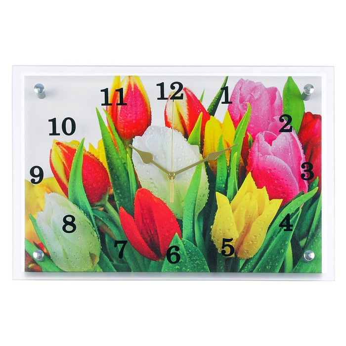 Часы-картина настенные, интерьерные "Разноцветные тюльпаны", бесшумные, 25 х 35 см