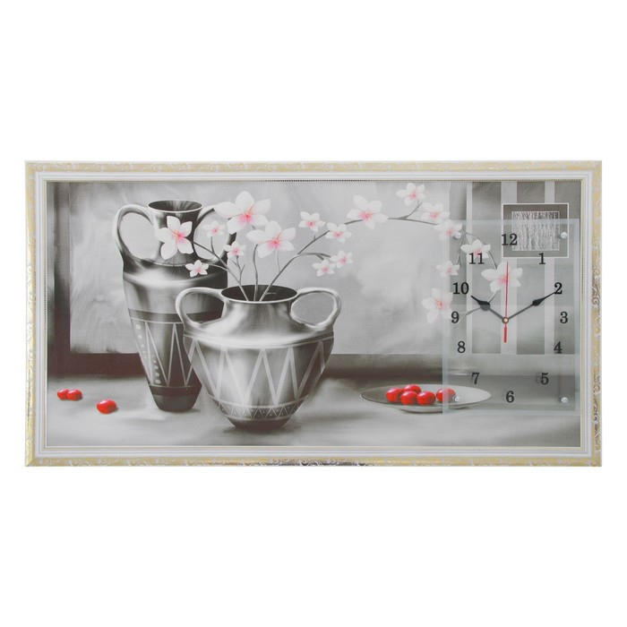 Часы-картина настенные, интерьерные "Серые вазы", 50 х 100 см, на холсте, бесшумные