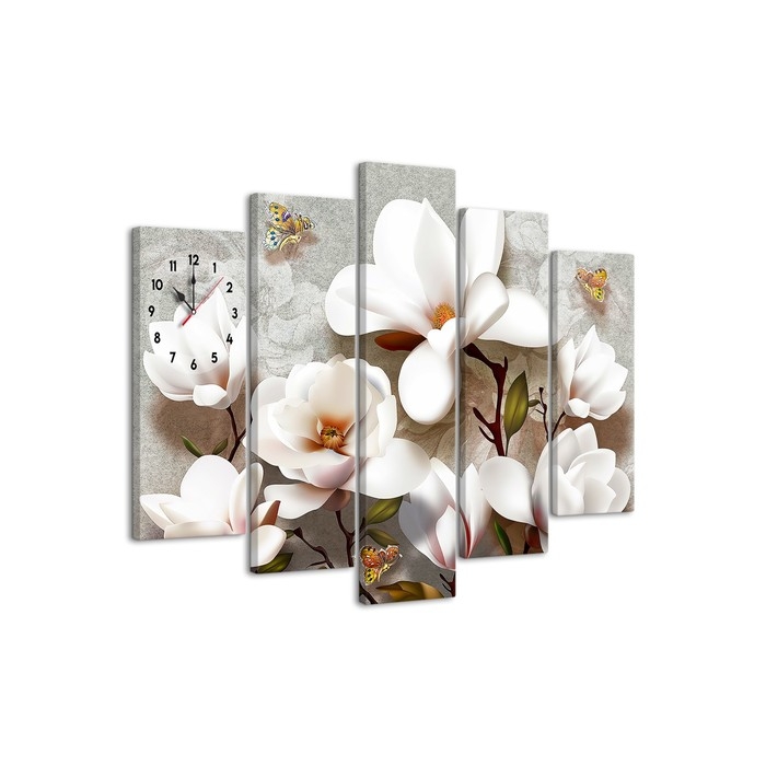 Часы-картина настенные модульные "Цветы", бесшумные, 80 х 140 см