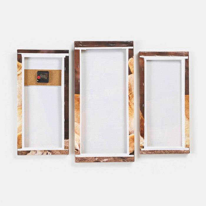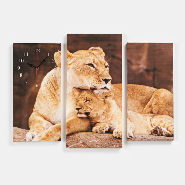 Часы-картина настенные, модульные "Львы", бесшумные, 60 х 80 см, триптих