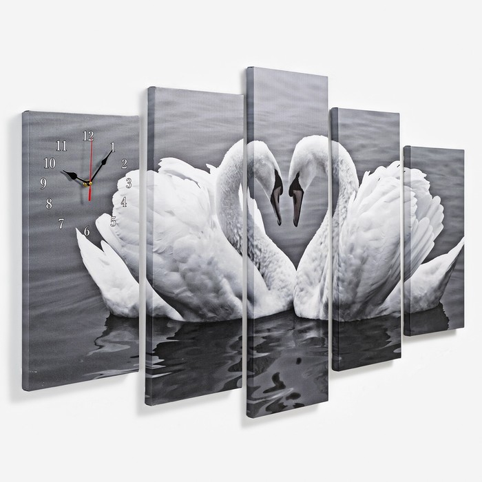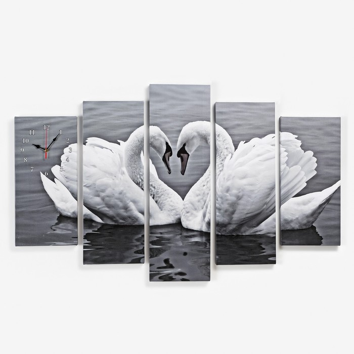 Часы-картина настенные, модульные "Пара лебедей", бесшумные, 80 х 140 см