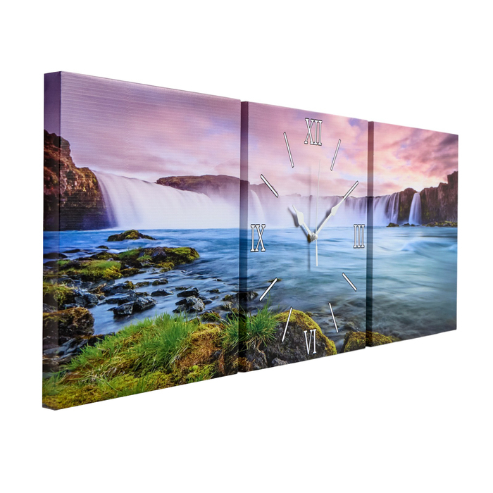 Часы-картина настенные, модульные "Водопады", бесшумные, 35 х 110 см, триптих