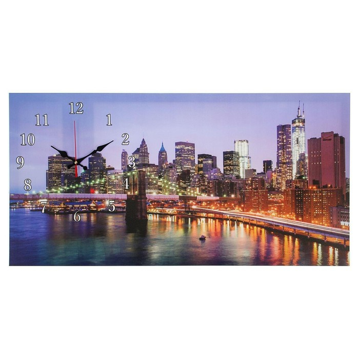 Часы-картина настенные, на холсте, интерьерные, бесшумные "Бруклинский мост", 40 х 76 см