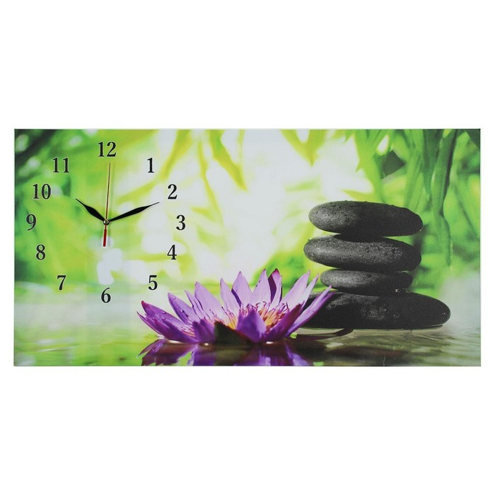 Часы-картина настенные, на холсте, интерьерные, бесшумные "Цветы и камни", 40 х 76 см
