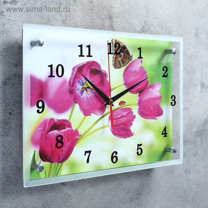 Часы-картина настенные, серия: Цветы, "Бабочка на цветке", 25х35 см