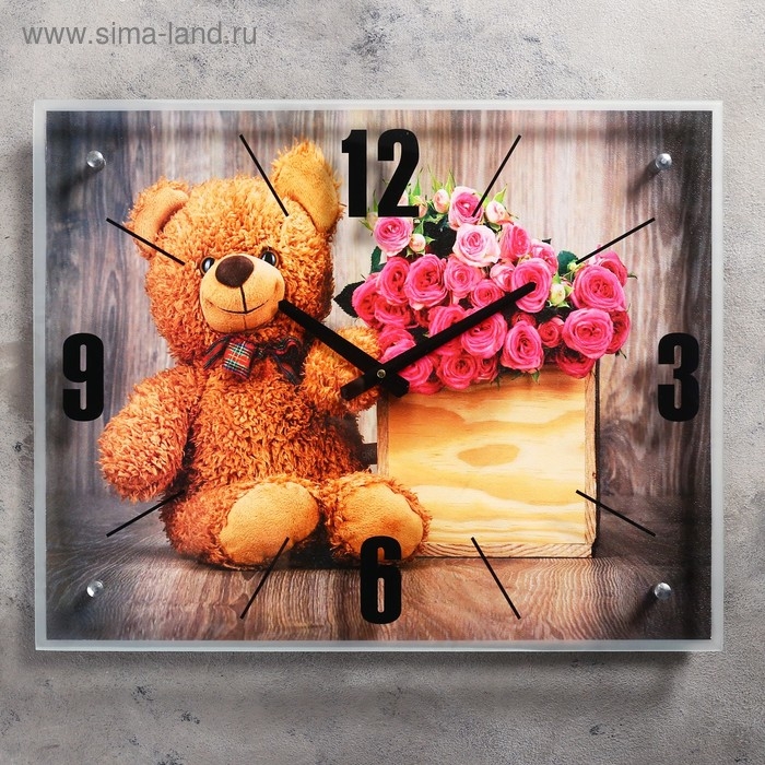 Часы-картина настенные, серия: Цветы, "Плюшевый мишка", 40х50 см