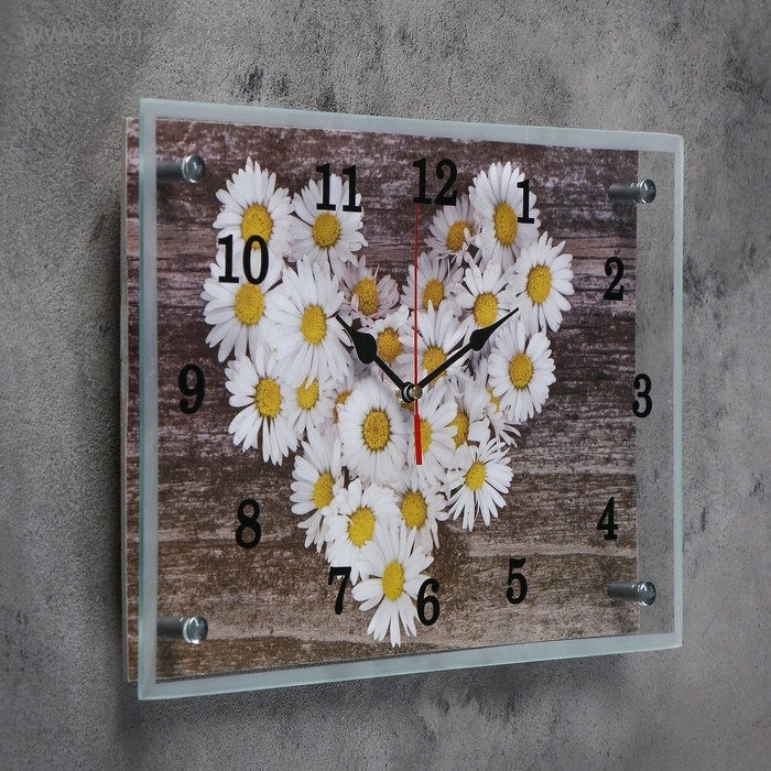 Часы-картина настенные, серия: Цветы, "Ромашки в форме сердца", 25 х 35 см