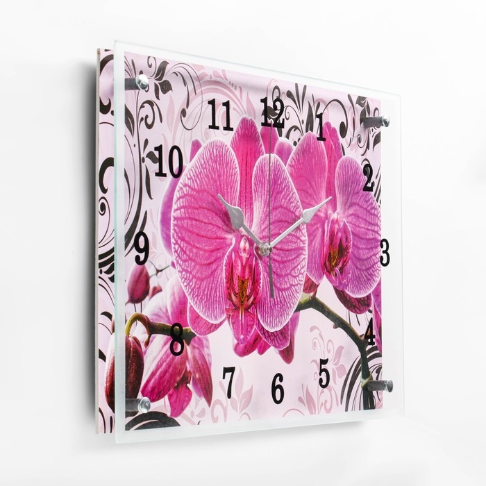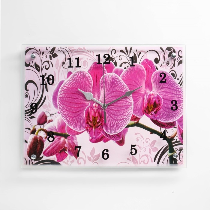 Часы-картина настенные, серия: Цветы, "Розовые орхидеи с узором", 30 х 40 см