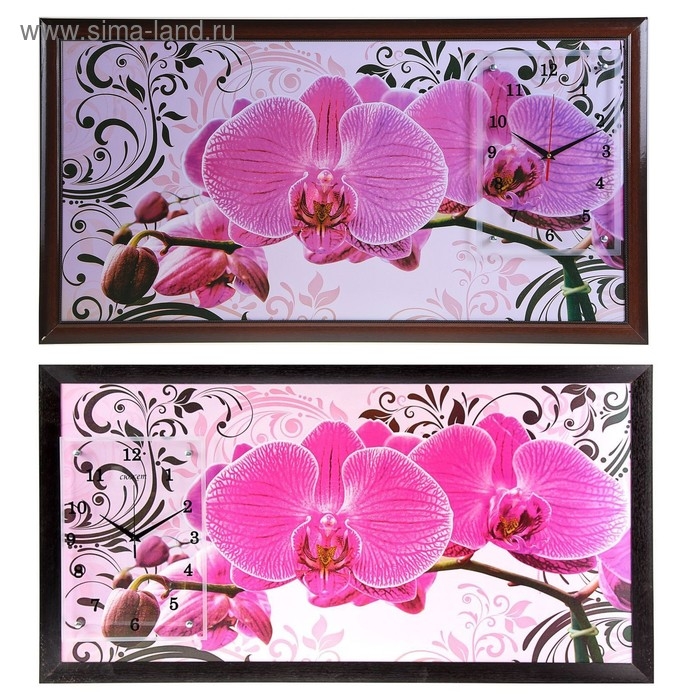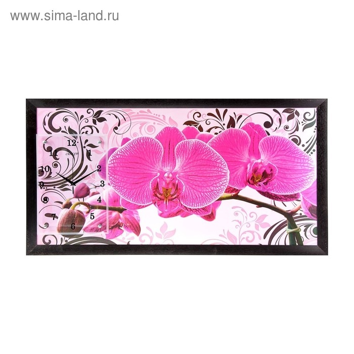Часы-картина настенные, серия: Цветы, "Розовые орхидеи с узором", 50 х 100 см